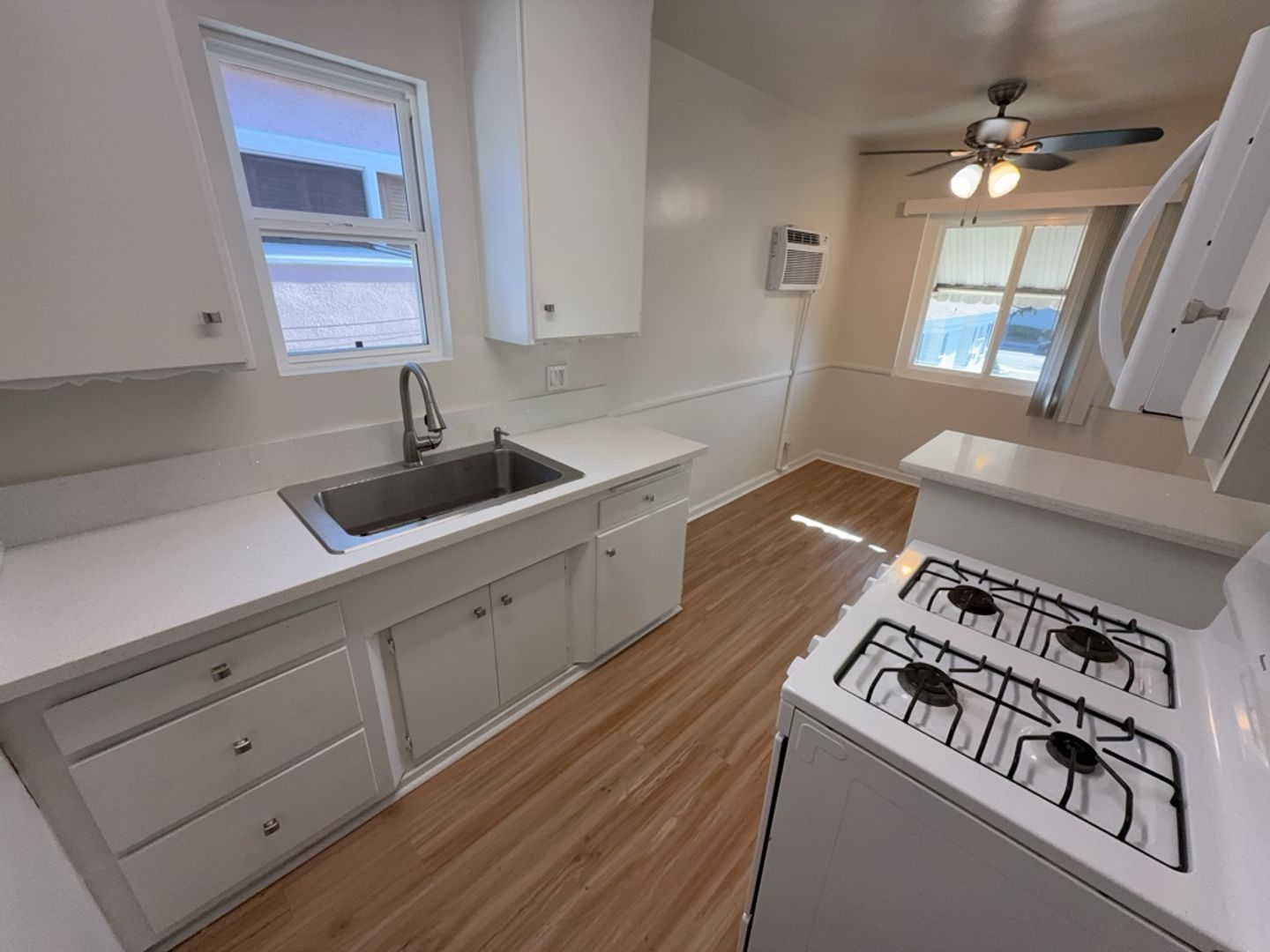 Welcome to your new home in the heart of Glendale, CA. This one-bedroom, one-bathroom apartment is a perfect blend of comfort and style. The apartment features a remodeled kitchen, complete with quartz counters that add a touch of elegance to your cooking space. The kitchen is also equipped with a gas range and a single bowl sink, making meal prep and clean-up a breeze. Fridge provided upon request. The living room and bedroom are both fitted with wall A/C units and ceiling fans, ensuring your comfort throughout the year. New double-pane windows not only provide ample natural light but also enhance energy efficiency. Experience the perfect blend of modern living and convenience in this Glendale apartment. Onsite laundry