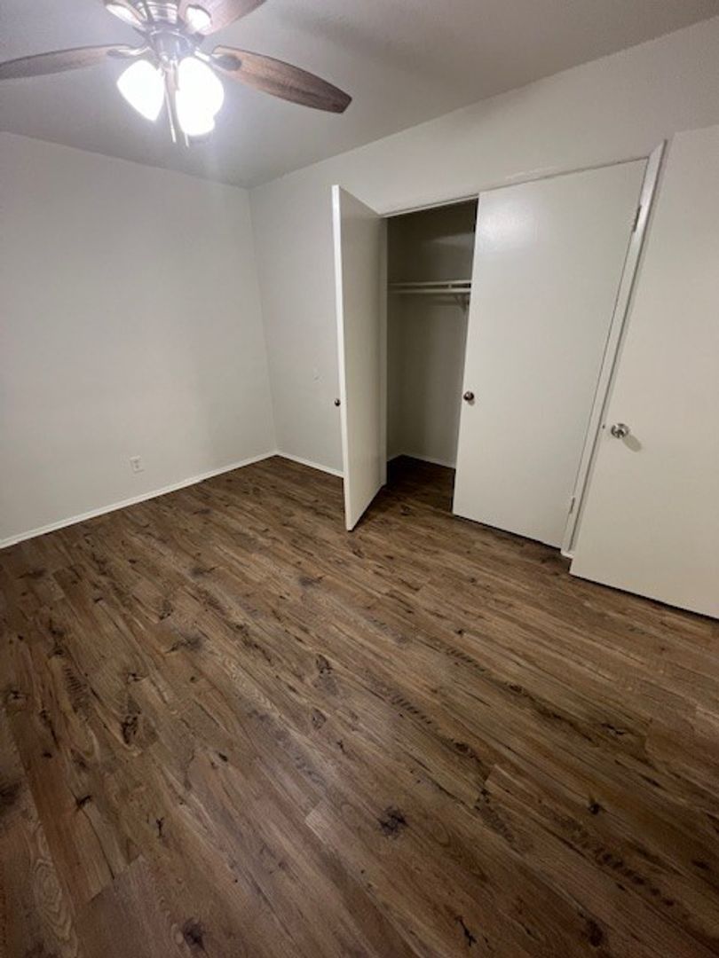 Welcome to Vineland Villas in North Hollywood, CA! This beautifully landscaped property offers a lower 2 bedroom 1 bath apartment with plank flooring throughout. The unit features wall a/c, mirrored closet doors, gas range, plus refrigerator upon request. The vintage flair kitchen cabinets and tile counter top add character and charm, while the ceramic tile kitchen wall adds a unique touch. Enjoy the convenience of 2 onsite laundry rooms and the comfort of ceiling fans in the dining area and bedrooms. Step outside to lush green landscaping and take in the serene surroundings. Don't miss out on this opportunity to call Vineland Villas home!
