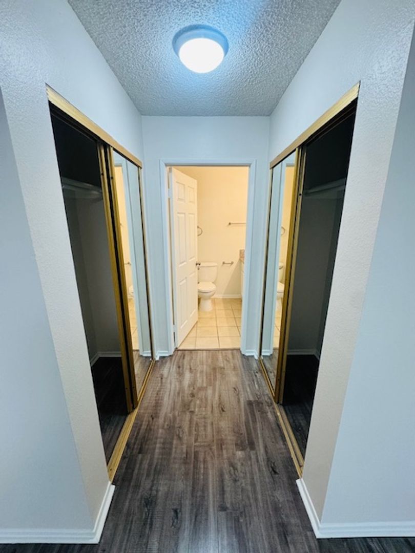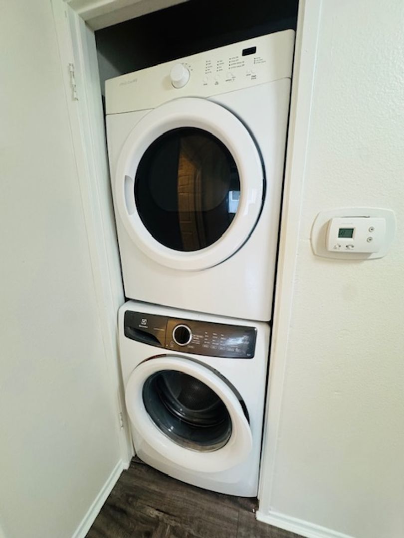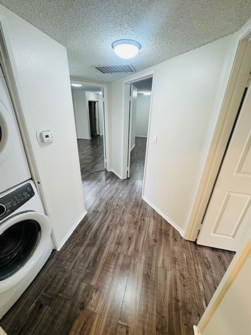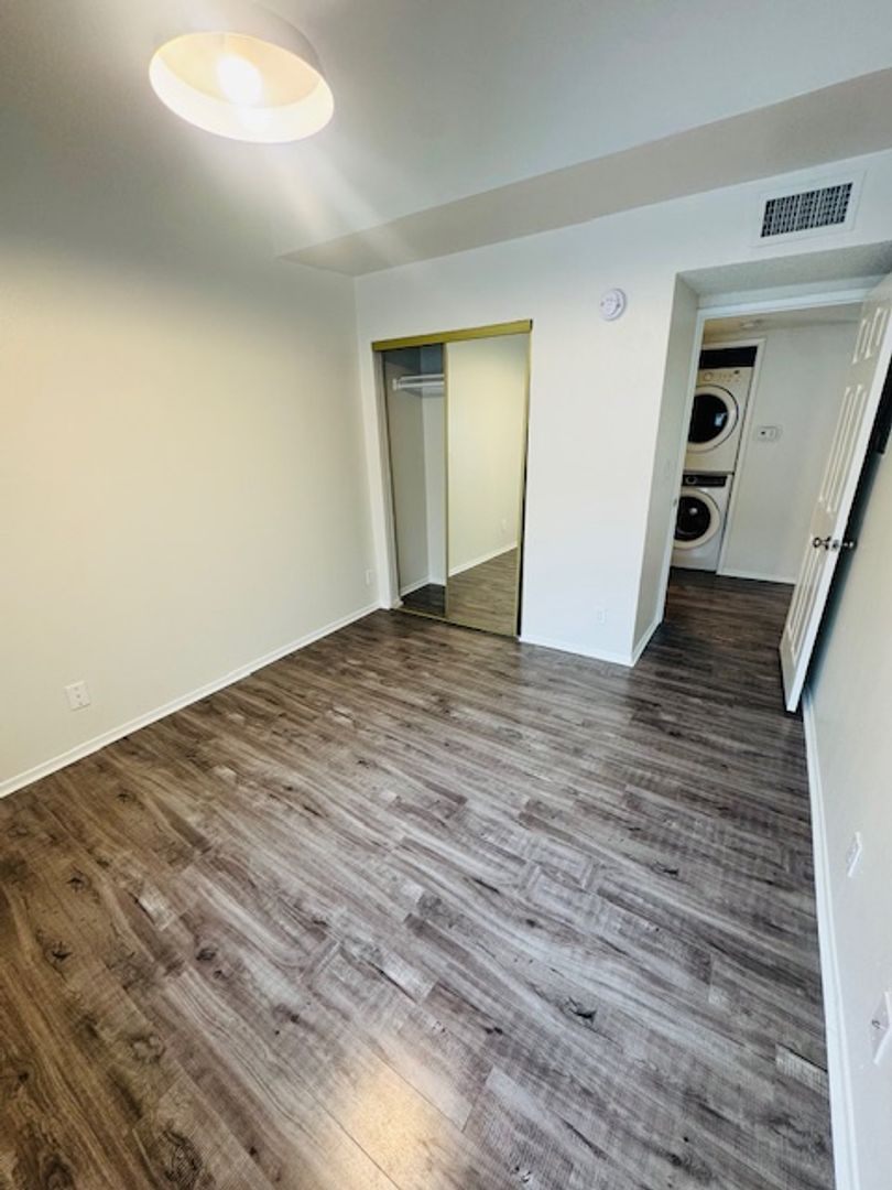 A remodeled upper-level 2-bedroom, 2-bath apartment in Glendale, CA, just above Glenoaks Blvd and just under 1,000 sq ft. The unit features laminate wood floors throughout, mirrored closet doors in both bedrooms, and fresh paint. The kitchen includes a gas range, stainless steel dishwasher, and refrigerator available upon request. Additional conveniences include central heating and air conditioning, a front-load washer and dryer in-unit, vertical blinds on all windows, new fixtures, a balcony, and two parking spaces. Contact on site manager Razmik at (818) 335-8327 with questions or to schedule a showing.