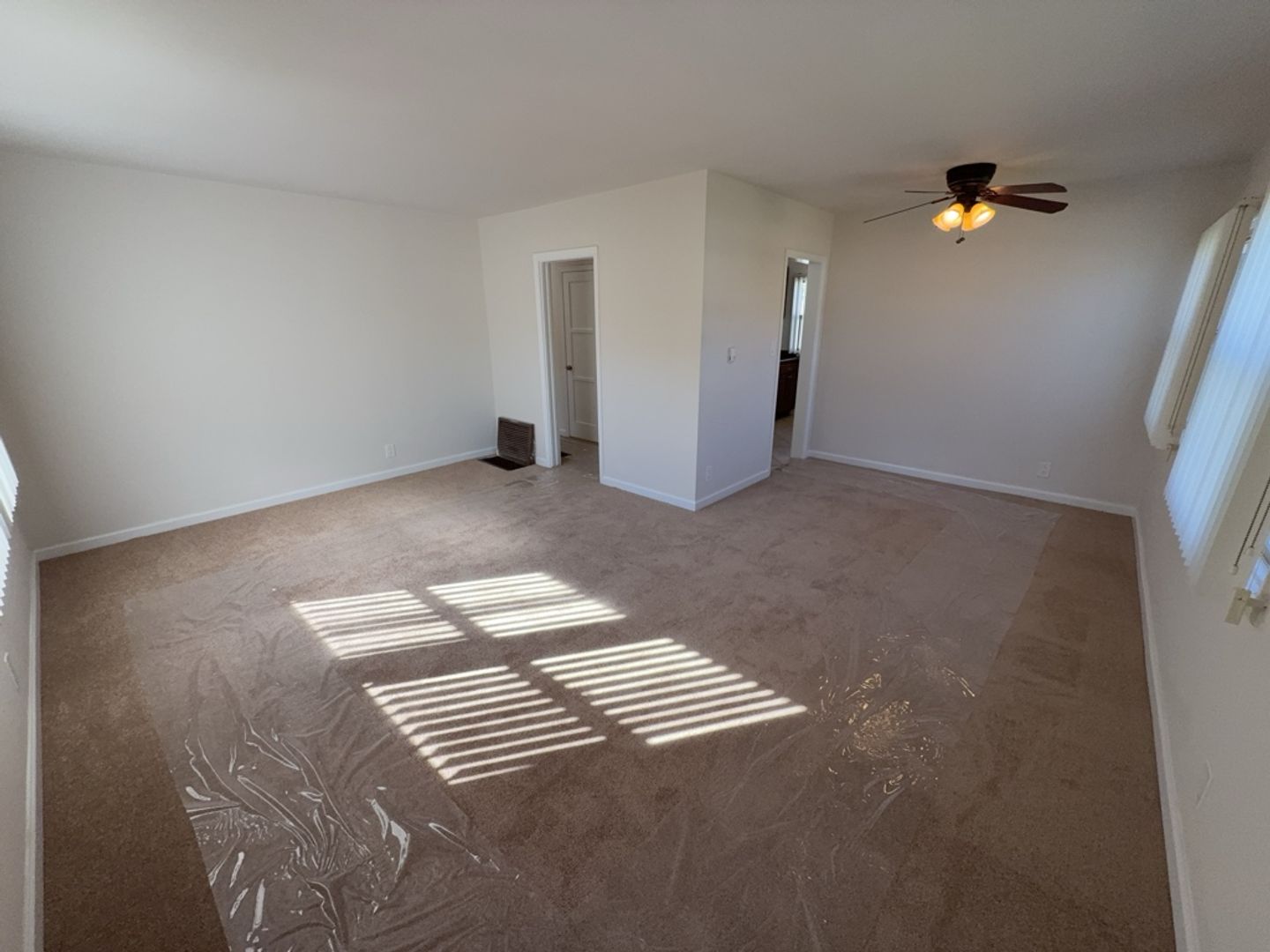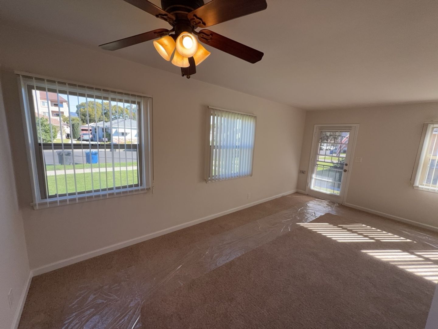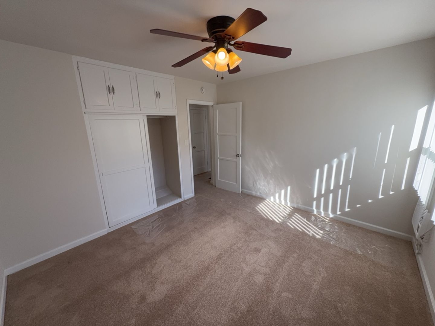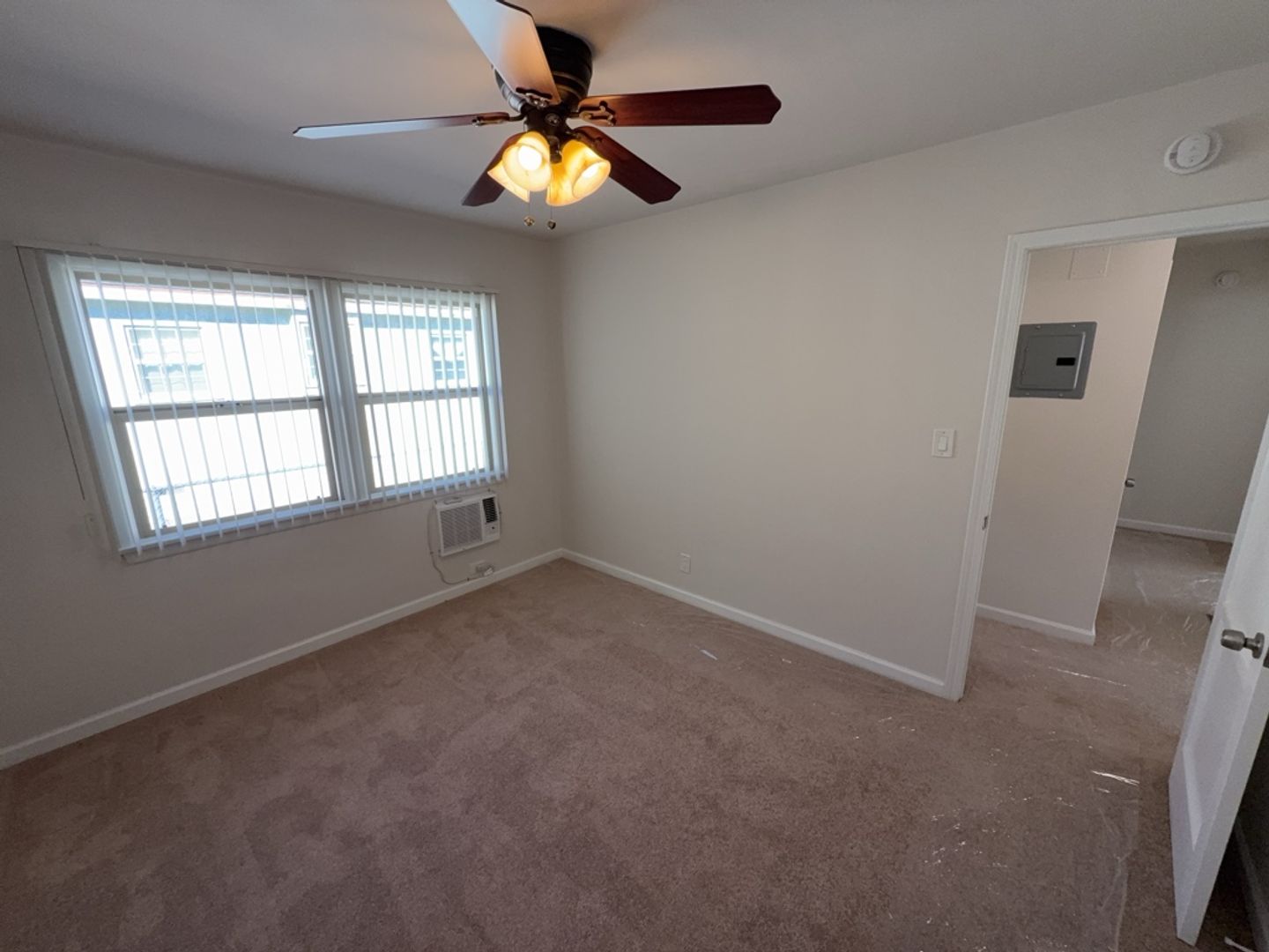 The apartment has been freshly painted throughout and offers new carpeting, with tile flooring in the kitchen and bathroom for easy maintenance. 3 Ceiling fans in unit are installed. 1 in each bedroom and one in the dining area. Wall air-conditioning units are located in the living room and bedrooms for added comfort.