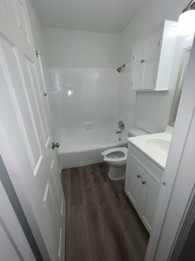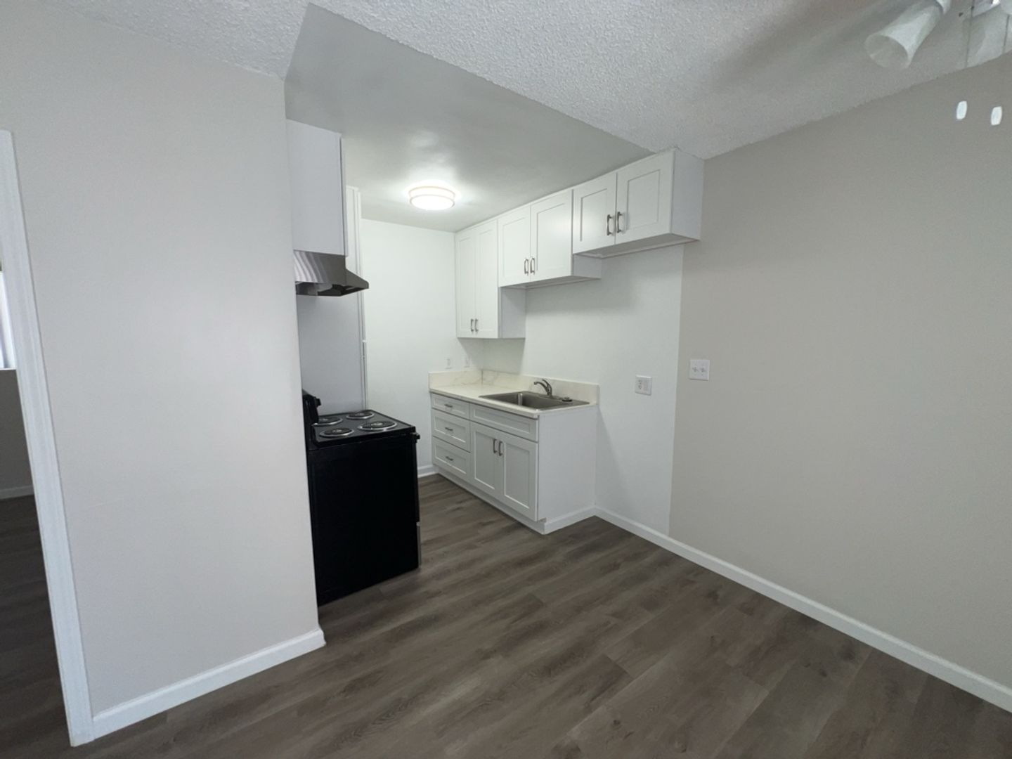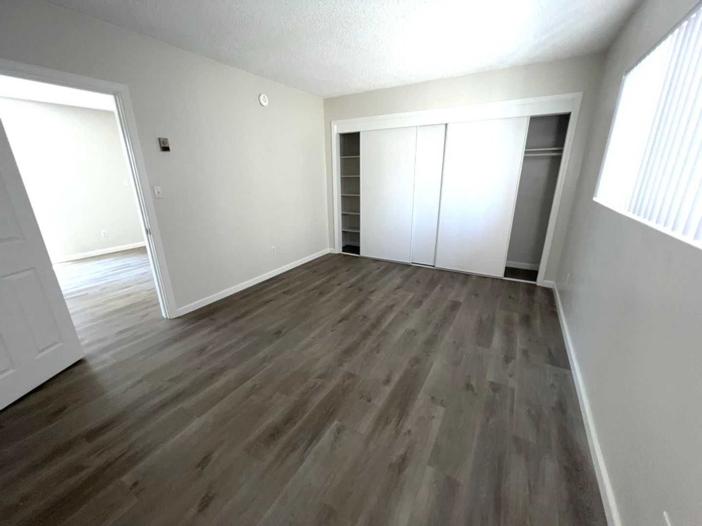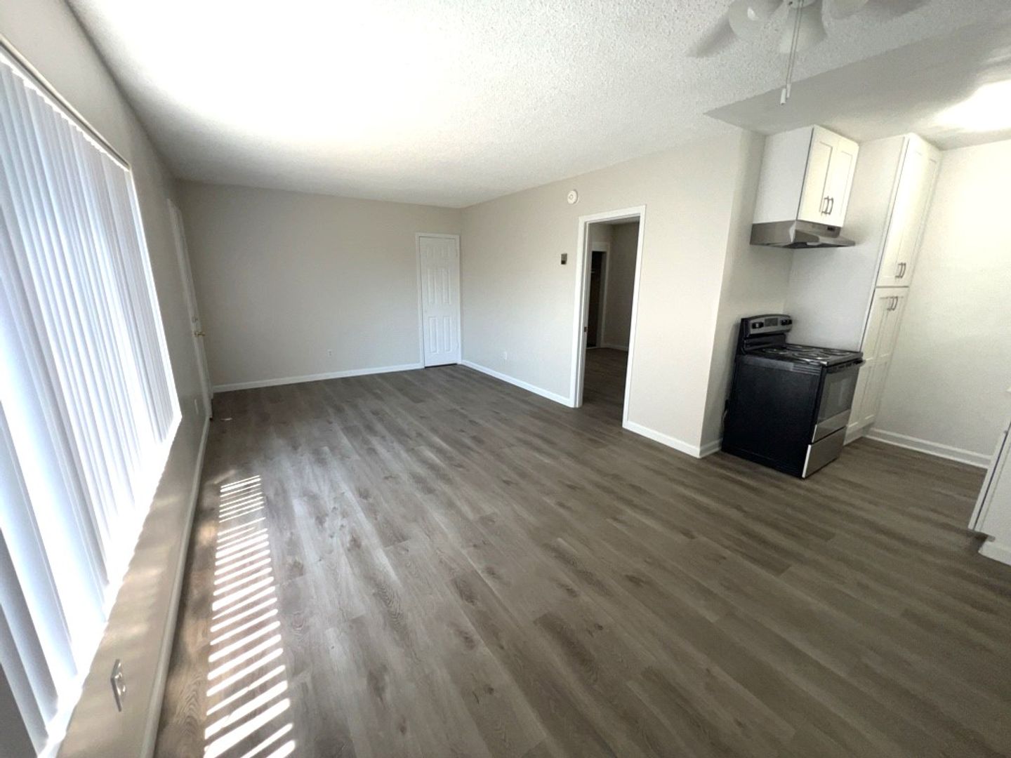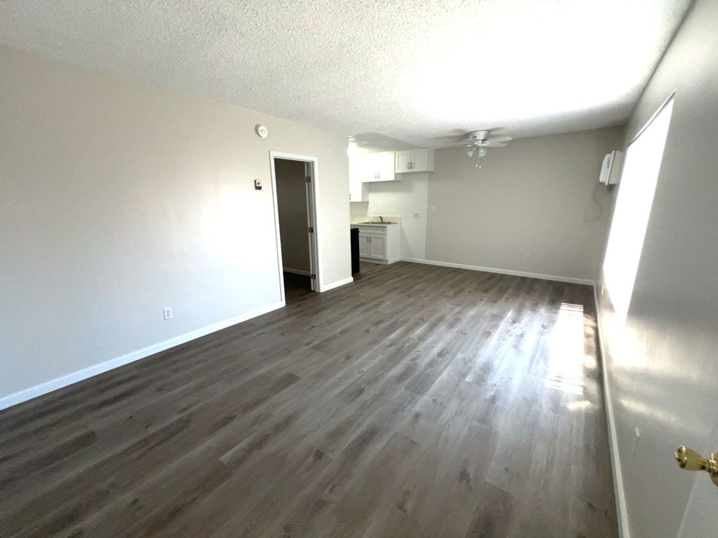 Welcome to Winnetka Palms, where we have an upgraded lower unit apartment located in the vibrant neighborhood of Winnetka, CA. This one-bedroom, one-bathroom apartment offers a blend of comfort and style. The unit features a wall A/C to keep you cool during the summer months, and ceiling fans for added comfort. The kitchen is a chef's dream with custom wood cabinets, quartz counters, a stainless steel single bowl sink, and a stainless steel stove, (refrigerator available upon request). The laminate plank flooring adds a touch of elegance to the space. The building offers a community pool for residents to enjoy, as well as an onsite community laundry room for added convenience, plus an intercom and remote entry system.